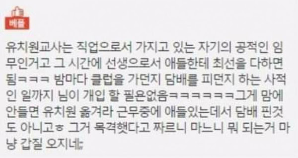 클럽 다니는 유치원쌤이 마음에 안든다는 아이엄마