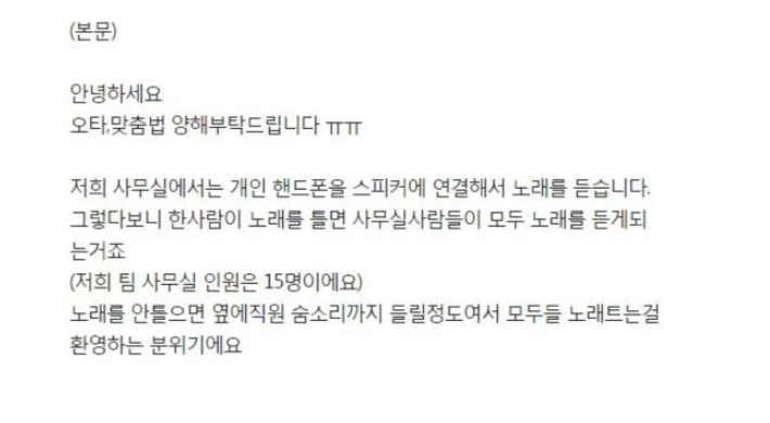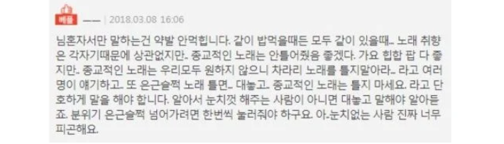 사무실에서 CCM(기독교 음악) 트는 여직원 썰