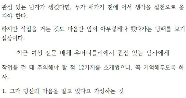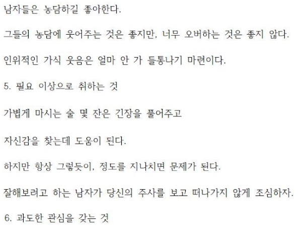 여자들이 관심있는 남자에게 작업 걸 때 주의해야 할 점 12가지