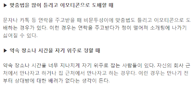 어렵게 잡힌 소개팅.. 만나러 가기전 부터 싫어지는 사람의 특징!