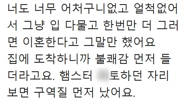 햄스터 때문에 이혼하게 생겼어요..