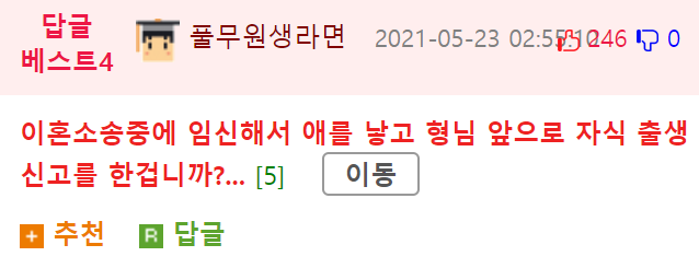 역대급 네글자 이혼 사유