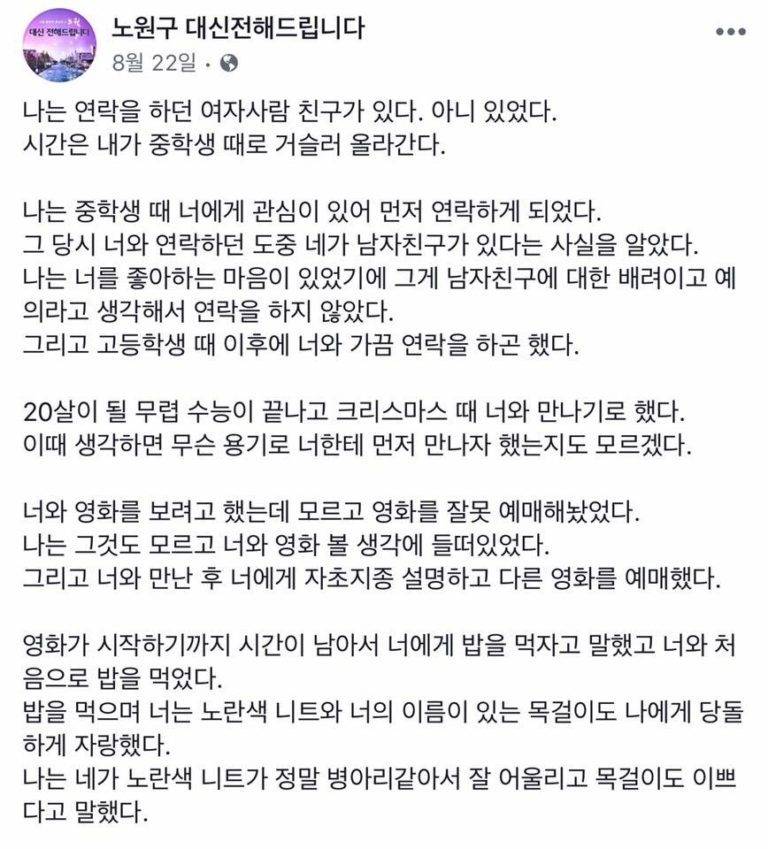 노원구 대신 전해드립니다..이별 레전드