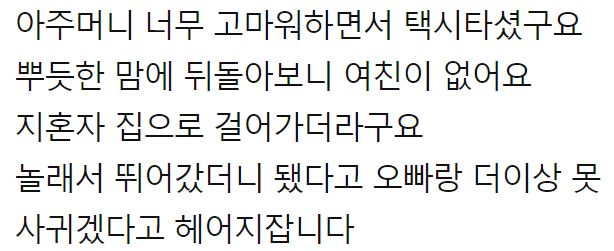 여자친구가 아프대서 약 사다 줬는데.. 헤어지자네요..