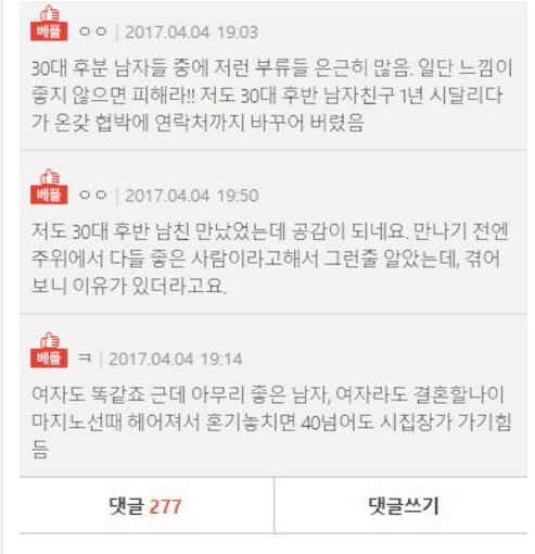 여자들아~ 30대 후반 남자는 신중히 만나라..