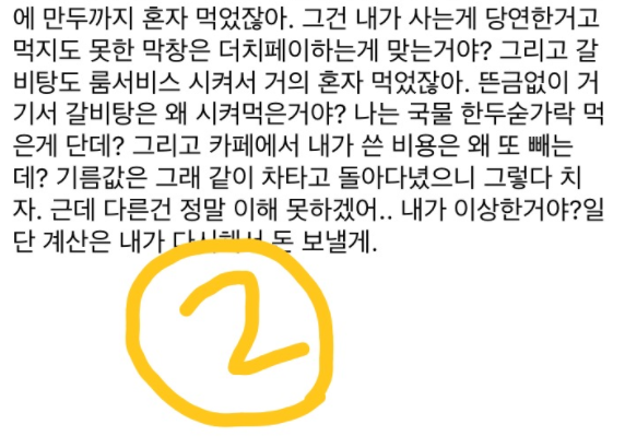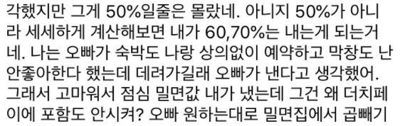더치페이인척 여친한테 데이트비용 청구하는 남자