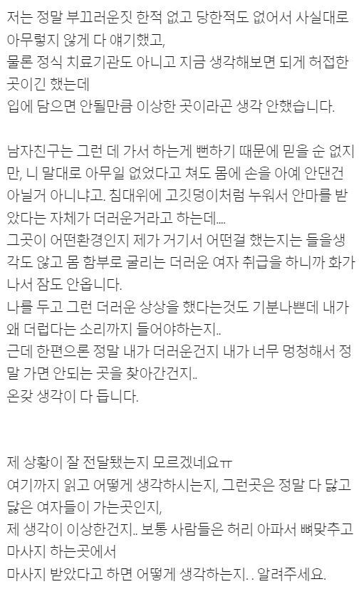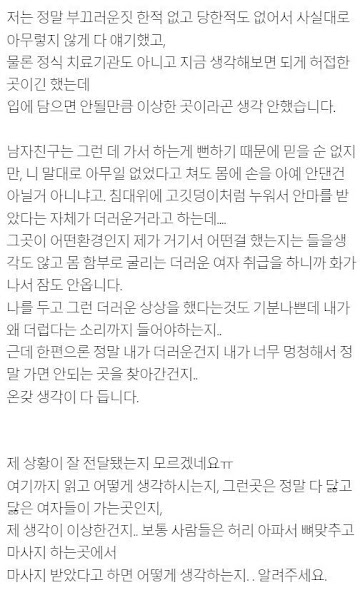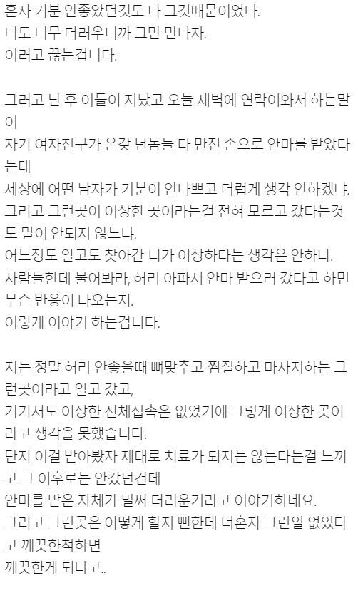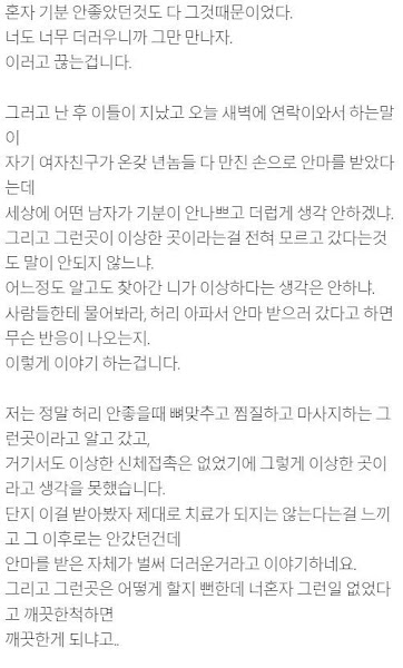 허리 아파서 안마 좀 받으러 간 게 더러운 짓인가요??
