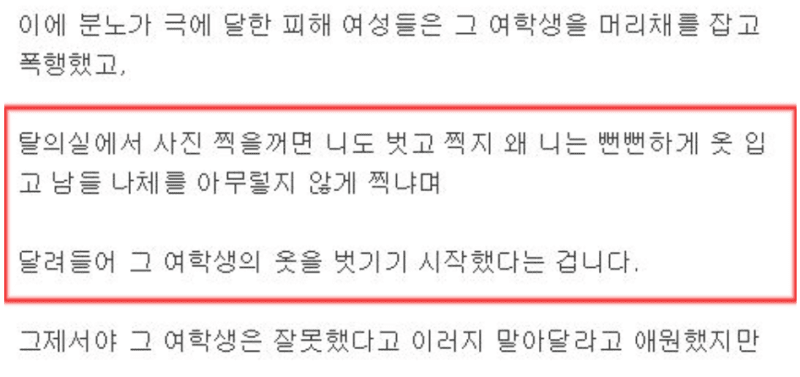 탈의실에서 셀카 찍는 무개념녀 참교육한 썰